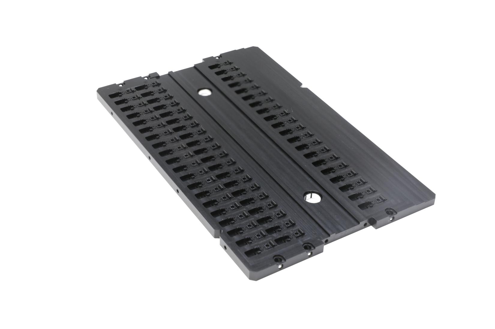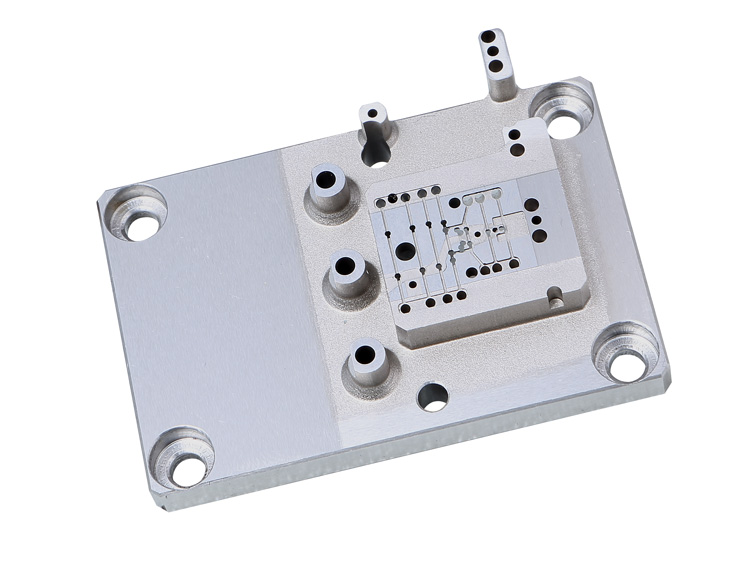 產(chǎn)品名:HGA彈性臂壓塊 材 料:440C或CD650鎢鋼 主要工藝:電火花,慢走絲、平磨 技術(shù)難點(diǎn): --零件尺寸小而幾何尺寸/形位公差精度極精; --所有精孔尺寸/位置精度0.003mm由慢走絲/鏜磨加工; --頂部十余處電火花加工異型淺槽輪廓/深度公差0.003mm --整體金剛石涂層 | 產(chǎn)品名:PZT載板 材料: Al 6061-T6 主要工藝:CNC 技術(shù)難點(diǎn): --所有120控制孔徑公差0.005mm以及位置度公差0.005mm. --硬質(zhì)黑色氧化處理后保證整體平面度0.02mm以內(nèi)。 | ![]() 產(chǎn)品名:集成安裝盒 材料:AL6061 主要工藝:CNC,硬黑氧化+化學(xué)轉(zhuǎn)化膜 技術(shù)難點(diǎn): -- CNC多軸加工;六面平面度、平行度、垂直度全部0.005~0.01mm; --三面精孔位置度0.01以內(nèi); --近300處尺寸由CNC多次/多面加工/CMM三坐標(biāo)測(cè)量確保。 |