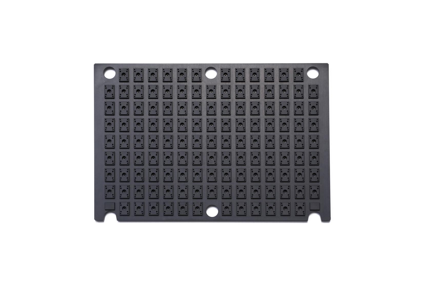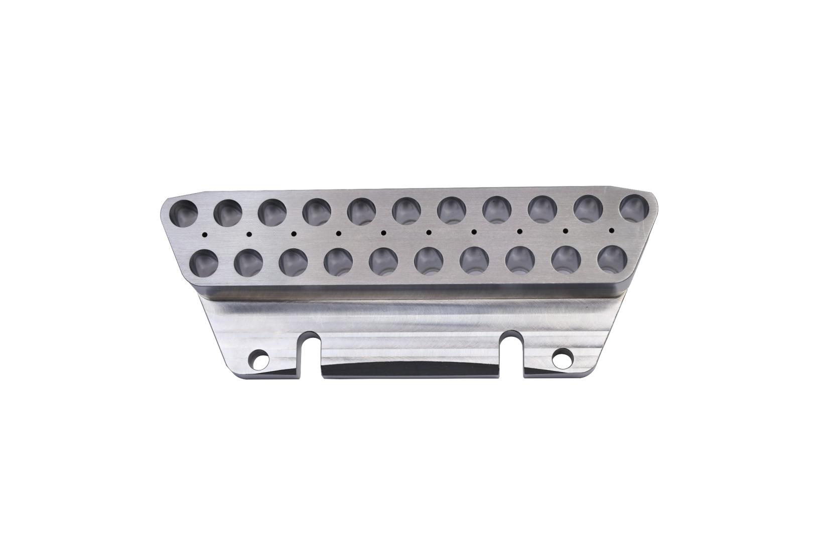 ![]() 1.產(chǎn)品名稱:模具 2.材料:SUS316L 3.主要工藝:CNC 4.技術(shù)難點(diǎn):21個(gè)孔位公差±0.005mm,孔內(nèi)粗糙度Ra0.1-0.2,且不能有劃痕 | 2.材料:白色PET 3.主要工藝:CNC 4.技術(shù)難點(diǎn):φ1.4孔公差+0.02mm,深度20.8mm,公差-0.03mm,位置度±0.01 | ![]() 2.材料:SUS316 3.主要工藝:數(shù)車、四軸CNC 4.技術(shù)難點(diǎn):內(nèi)孔及頭部外圓同軸度0.03 |
