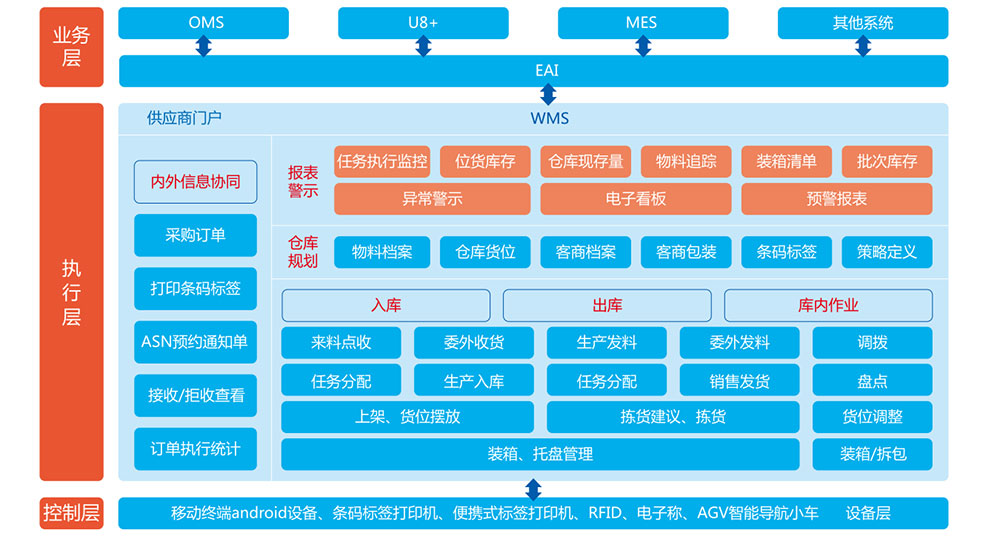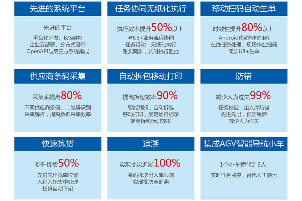 公司技術(shù)WMS倉(cāng)儲(chǔ)執(zhí)行管理系統(tǒng)采用最新的信息網(wǎng)絡(luò)技術(shù),通過(guò)條碼/RFID技術(shù)、移動(dòng)打印、二維碼解析、AGV智能導(dǎo)航小車及先進(jìn)生產(chǎn)管理理念,能夠有效的對(duì)倉(cāng)庫(kù)流程和空間利用進(jìn)行管理,實(shí)現(xiàn)最小包裝跟蹤管理、批次管理、先進(jìn)先出管理、快速掃碼出入庫(kù)和動(dòng)態(tài)盤(pán)點(diǎn),提高企業(yè)倉(cāng)庫(kù)空間利用率及員工工作效率。