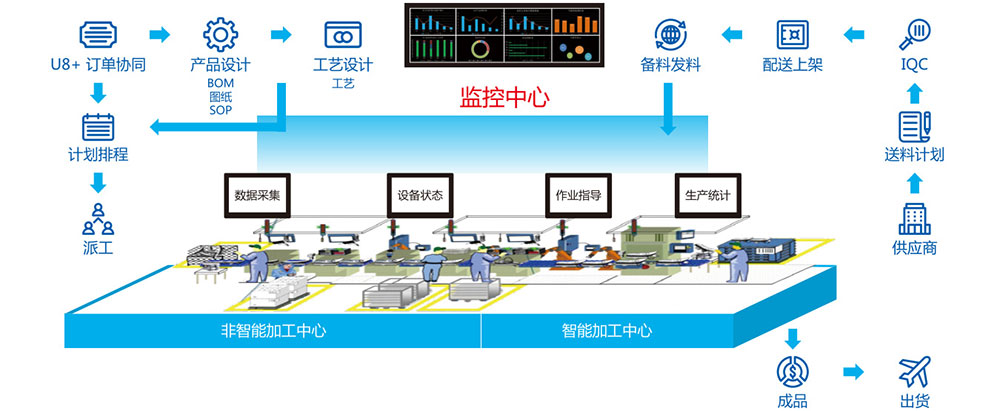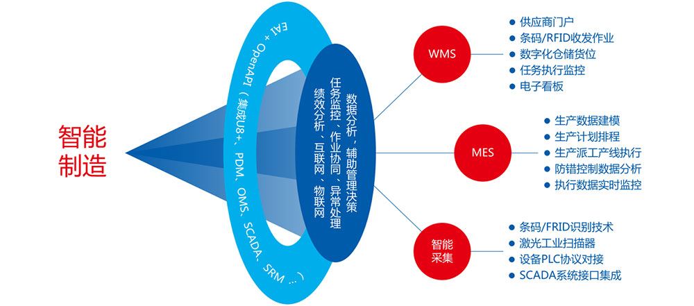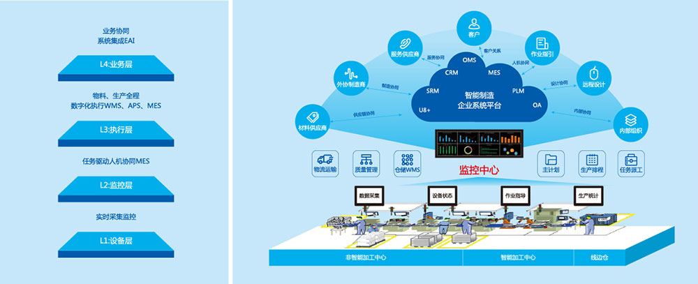 智能制造不但要生產自動化、信息化,更需跨業(yè)務層級整合信息系統(tǒng),實現(xiàn)業(yè)務層、執(zhí)行層、監(jiān)控層、設備層的互聯(lián)互通。MES系統(tǒng)是鏈接業(yè)務層與設備監(jiān)控層的橋梁,通過MES可以實時掌控生產進度與監(jiān)控異常。